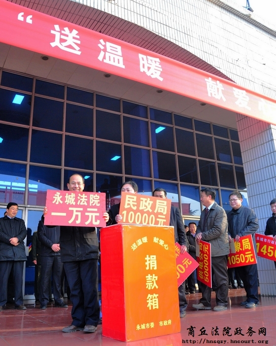 2月11日,永城市市委大院暖风和煦,红绸溢彩,由永城市政府牵头组织的“向困难群众 ‘送温暖 献爱心’捐款活动”正在热烈地进行。韦唯的《爱的奉献》旋律温婉,词真意切,字字入心。