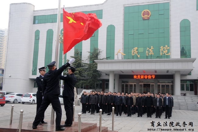 2月25日上午,春节后上班伊始,梁园区人民法院举行了庄严的升国旗仪式。伴随激扬的国歌,迎着微微的春风,鲜艳的五星红旗在梁园区法院上空冉冉升起。全体干警排列成整齐的方队,向国旗行注目礼。
