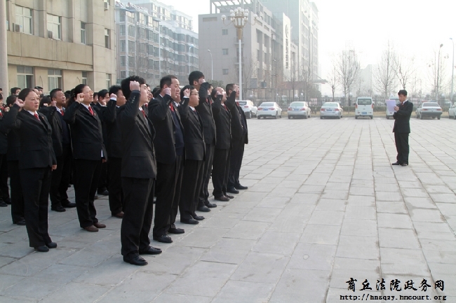 2月25日,春节长假后上班第一天,民权县人民法院全体干警统一着装,整齐列队在旗杆下,举行了升国旗暨法官宣誓仪式。