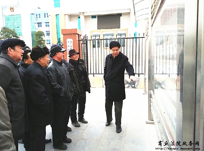 会前,张慎祝亲自担当“导游”,引领老干部到法院诉讼服务中心、监控中心、健康咨询中心以及老干部活动中心参观。在诉讼服务中心门外,张慎祝耐心细致的向老干部讲解院公告栏使用情况、法官信息公开接受监督情况、院政务、党务、审务三公开等情况,并在参观途中讲述了本院在公开公正、便民利民、接受监督、信息化建设、从优待警等工作的做法,并认真听取了老干部的意见建议。