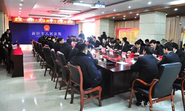 参观结束后,召开了“虞城——新沂人民法院学习交流座谈会”,新沂市法院副院长王晓明通过PPT向大家介绍了新沂市人民法院的工作情况;观看了《新沂市法院1+N执行机制专题片》;之后组织各对口部门负责人分别进行了工作交流。
