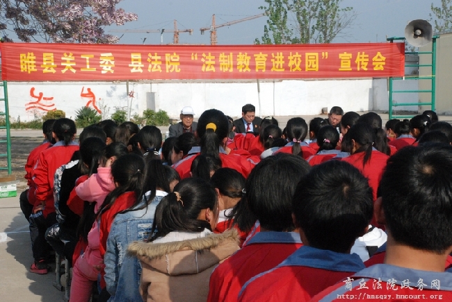 为有效预防青少年学生犯罪,提高他们的法制意识,4月20日下午,睢县人民法院少年庭法官乔家习一行四人与县关工委领导走进睢县董店一中开展“法制教育进校园”活动,该校一千多名师生聆听了法制讲座。