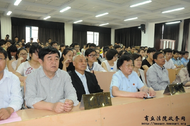 5月22日,商丘市梁园区人民法院在商丘师范学院巡回开庭审理曹某盗窃案,人大代表、政协委员和关工委负责人、商丘师范学院法学院学生等300余人参加旁听。庭审之后,法官、检察官还就学生关心的问题进行了交流互动,活动受到师生的欢迎。