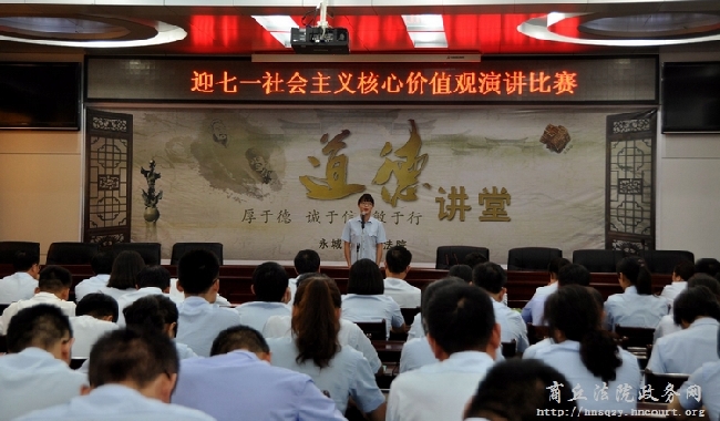 为深入开展社会主义核心价值观教育实践活动,迎接建党九十四周年,6月30日下午,永城市人民法院举行“迎七一·践行核心价值观”演讲比赛活动,经过层层筛选,共有八名青年干警参加比赛。