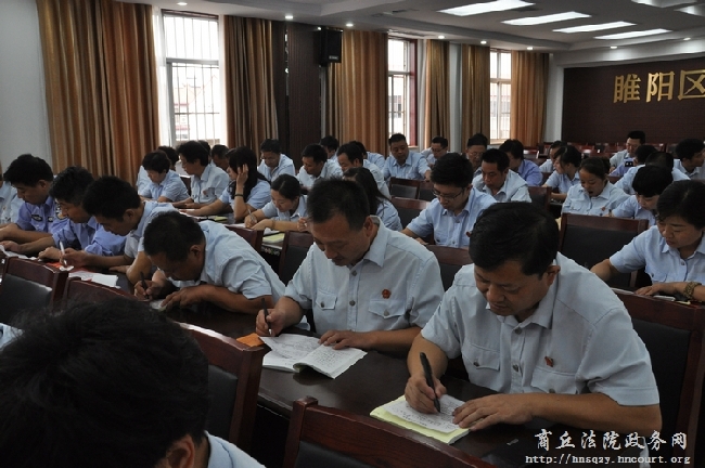 今年以来,睢阳区法院坚持高标准、严要求,扎实开展了“三严三实”专题教育,院党组成员带头深学细照,带头查摆问题,带头整改提高,并开展了领导带头上党课活动,在院党组书记、院长张慎祝的带领下,已有3名党组成员先后为全体党员讲授了党课。