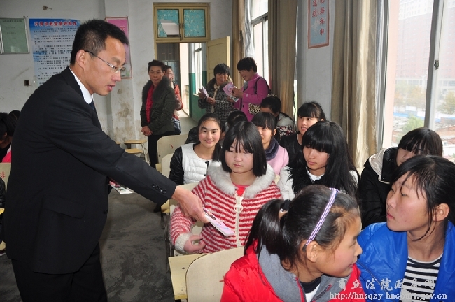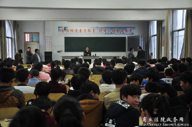 11月9日下午,虞城县人民法院党组成员、政治部主任冯尚文带领少年庭、民一庭、民二庭的10多名法官走进虞城县第三中学,开展“情暖留守儿童送法进校园”活动。
