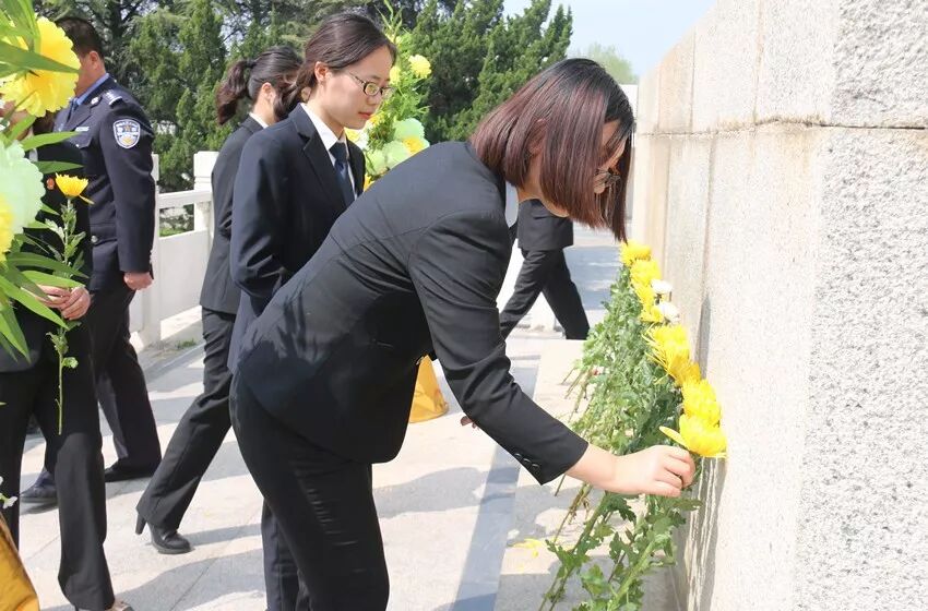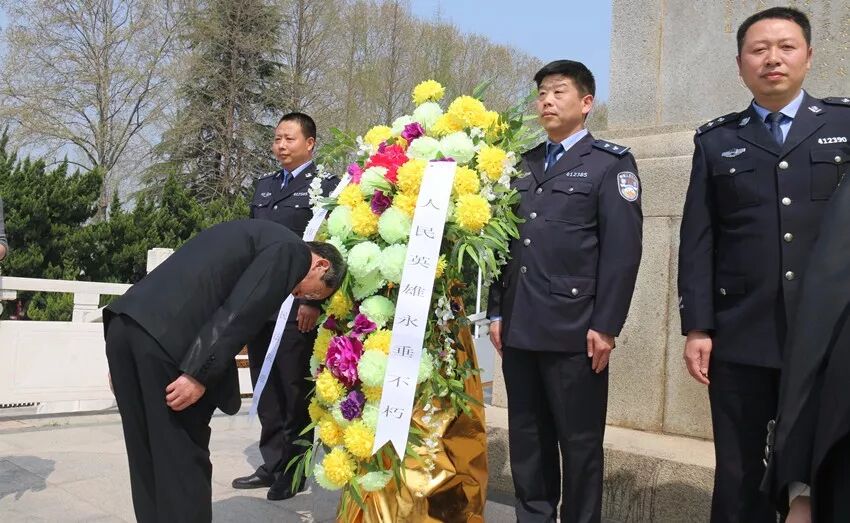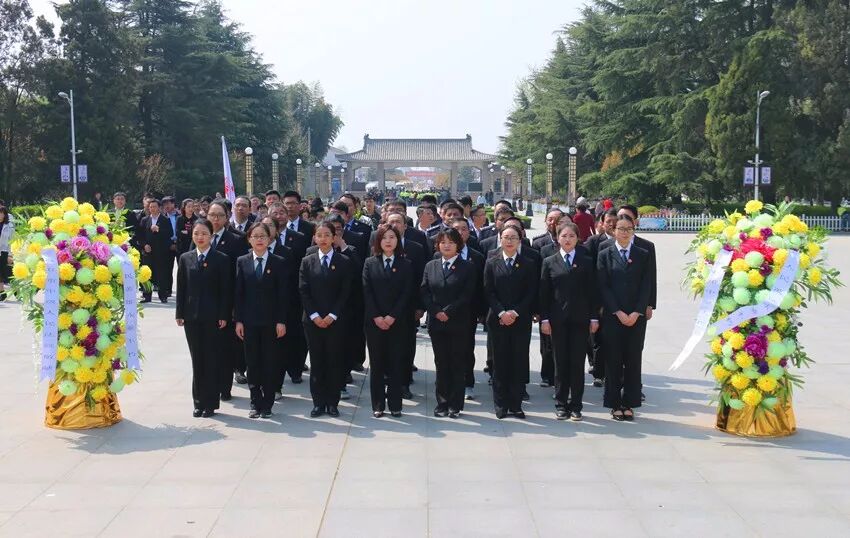上午10时,在革命烈士纪念碑前,干警们向革命烈士敬献花圈,祭奠烈士英魂,近40名干警向革命先烈默哀致敬,以表达对先烈的缅怀之情。