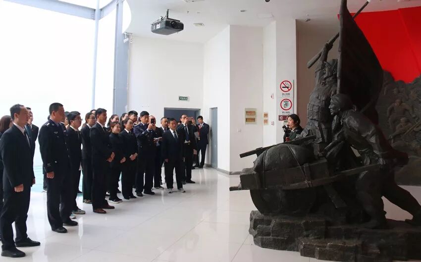 最后,干警们一一在革命烈士纪念碑前敬献菊花告慰先烈,并参观陈官庄淮海战役纪念馆,通过认真听取讲解员讲述战役时期革命先烈的事迹,全体干警深刻感受到了早期共产党人走过的艰难革命道路和高尚人格魅力。