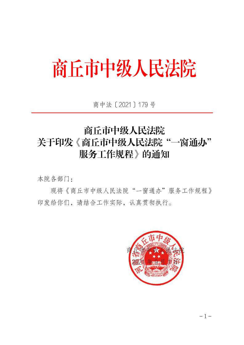 商丘市中级人民法院 关于印发《商丘市中级人民法院“一窗通办” 服务工作规程》的通知
