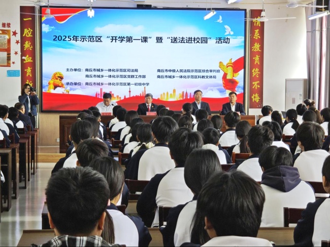 9月24日上午,商丘中院示范区综合审判庭庭长田策走进商丘市城乡一体化示范区第一中学,与示范区政法委、示范区党群工作部、示范区科教文体局共同举行“开学第一课”暨“送法进校园”普法教育活动。