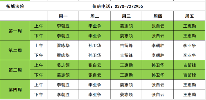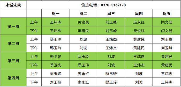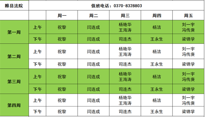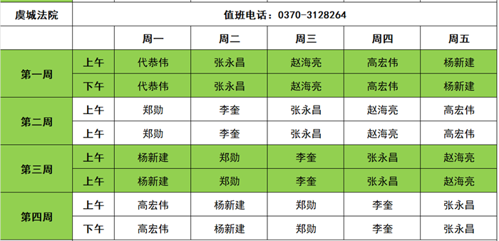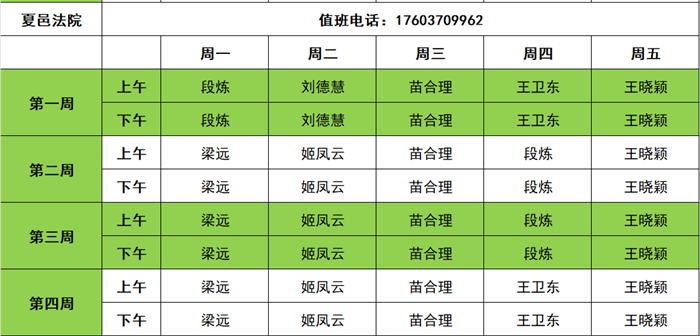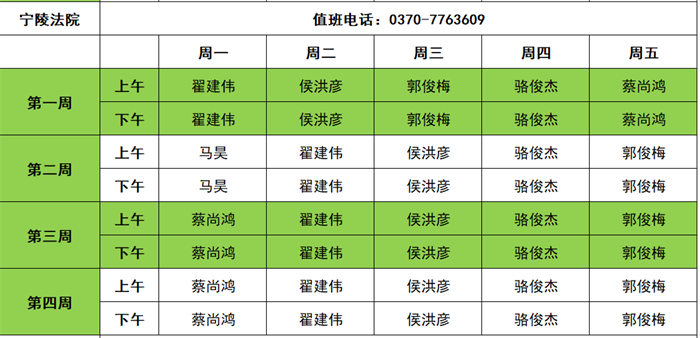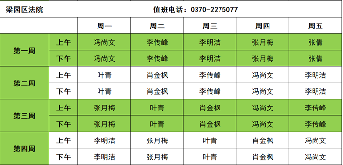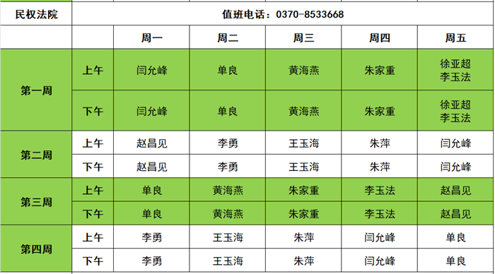 商丘两级法院2025年11月领导接访值班信息表