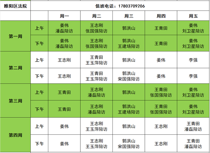 为全面落实院领导值班接访制度,畅通群众信访渠道,依法及时解决群众合理合法诉求,现将2025年11月商丘市两级法院院领导公开接访安排公示如下: