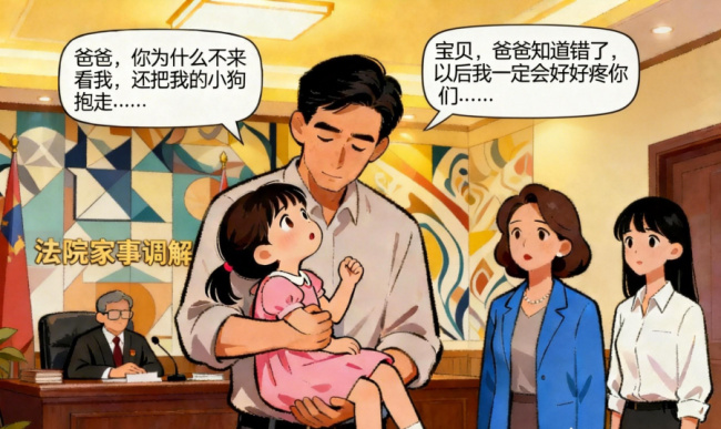 这起纠缠着家庭房产纠纷、大女儿生活费争议和小女儿探视权隔阂的家事案件,在这一刻得到了真正的化解。