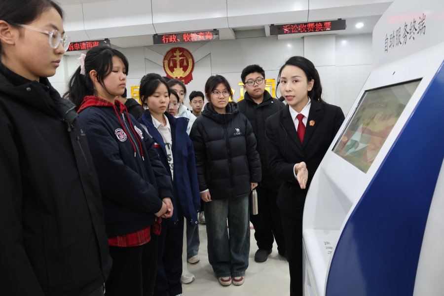 在立案诉讼服务中心,学生们详细了解了案件从立案到审理的全流程。