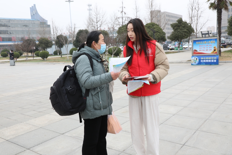 商丘南站广场上人潮涌动,返乡返程的旅客步履匆匆。商丘中院的志愿者们身着红马甲,在车站广场上为 不熟悉商丘的外地旅客指路并向他们推介最优的出行方案。 同时,志愿者们还向过往群众发放法律宣传彩页和《商丘市文明行为促进条例》《民法典100问》等法律书籍,用通俗易懂的语言解读相关法律法规,引导群众在遇到法律问题时,学会运用法律武器维护自身合法权益。面对旅客们的咨询,志愿者们一一细致解答,将法治关怀送到群众身边。此次活动共发放宣传资料 200 余份,提供法律咨询和便民服务30余次。