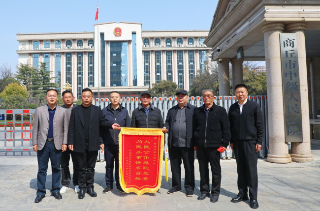 “感谢张书记!为我们村里新修了水泥路,村民们出行更方便了!”3月13日,宁陵县华堡镇郑庄村村主任闫景华、闫永新一行4人代表全体村民,专程来到商丘中院赠送锦旗,向中院驻郑庄村第一书记张心想表示感谢,对中院驻村帮扶工作赞不绝口。