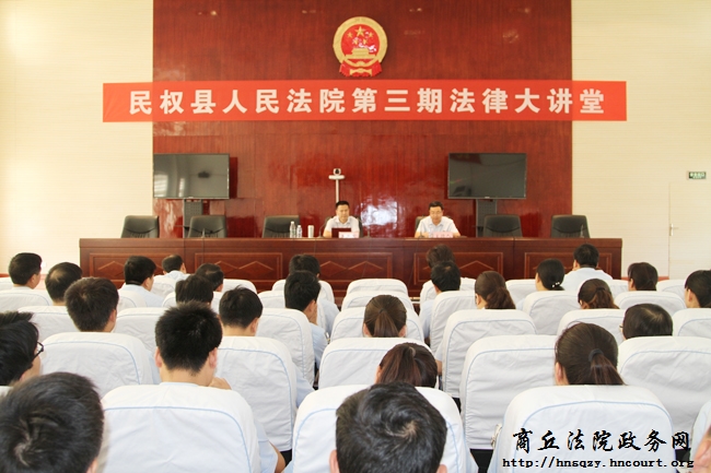为了提高干警的理论业务水平,增强实际办案能力,8月14日,民权县人民法院开展第三期法律大讲堂活动,邀请了河南省高级人民法院民三庭副庭长王玉宏为全院干警授课。